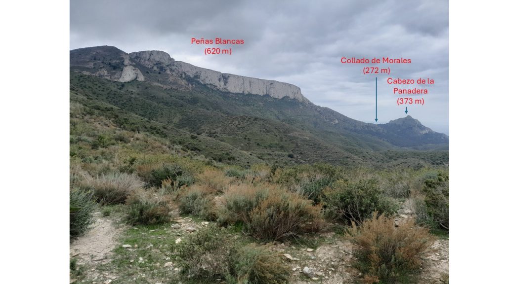 Peñas Blancas es posiblemente la montaña más bella de Cartagena, además de la más alta con sus 620 metros de altitud. En esta ocasión, nos conformaremos con admirarla y recorrer a media altura su magnífica cara norte, que se desploma abrupta y verticalmente sobre el valle del Cañar. Para ello, partiremos del pueblo de Perín y por la rambla del Horno Ciego alcanzaremos el collado de Labajo para adentrarnos en las Lomas de las Carrascas por un antiguo y deteriorado sendero minero. En la parte final del sendero, nos encontraremos un paso expuesto, pero fácil de superar; y a su salida, antes de alcanzar el collado de Morales, una breve cresta aérea, que sin mayor dificultad podremos también superar con cierta pericia montañera. Para que la excursión no carezca del aliciente de hacer una cumbre, abandonaremos el sendero circular, para subir al Cabezo de la Panadera (373 m). Finalmente, completaremos el recorrido por la Rambla del Cañar, buscando el regreso por la morra de la Yesera.